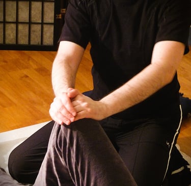 "Etendue sur un futon, vous restez passive tandis que le praticien enchaîne une vingtaine de gestes doux et précis. Les mouvements de secousse rapides provoquent des vibrations qui se propagent d'un bout à l'autre du corps. En vibrant, les muscles et les articulations se relâchent. Grâce au repos du corps, le mental "décroche" peu à peu. Ce qui, après quelques séances, facilite le sommeil".